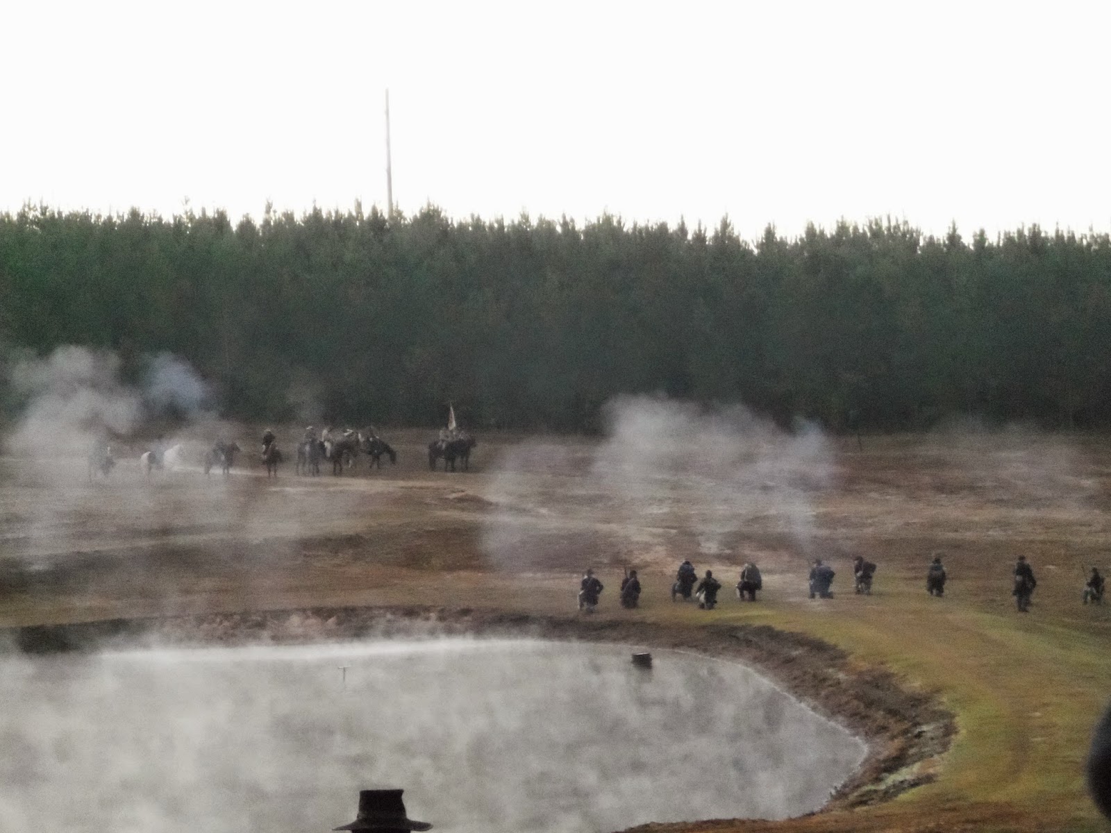 Singing a few choruses of "Bonnie Blue Flag" as they march beside the peaceful creek. Such a nice day for a march. Would be a shame if something bad happened.........